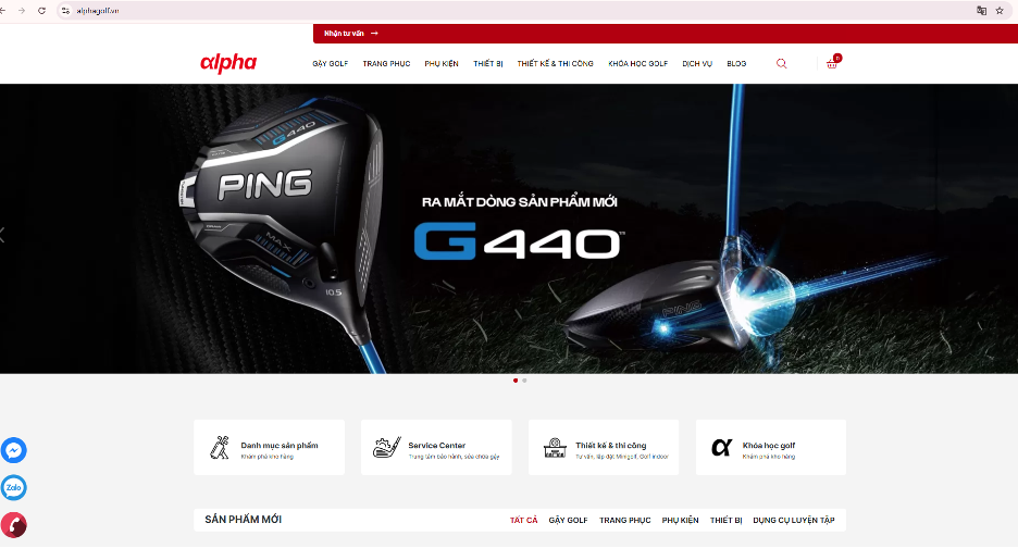 Bước 1. Truy cập vào trang web của ALPHA theo đường link sau Alphagolf.vn, giao diện trang chủ sẽ hiện lên như sau:
